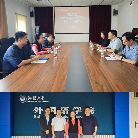 江汉大学bevictor伟德副经理牛忠光以及英语系、语言实验中心、学科与研究生管理办公室负责人参加了座谈会。会上,牛忠光首先致欢迎辞,向到访一行对江大外院的基本情况、团队力量以及翻译硕士办学情况等方面进行了详细介绍。随后,熊俊致辞,对江大外院给予的热情接待表示感谢,并介绍了公司的基本情况和人才培养特色。牛忠光就江大外院的学科与专业建设、学科团队管理与运行情况进行了进一步的介绍。江大外院英语系主任曹小雪介绍了江大才刚开始征集新版人才培养方案修订意见的情况。江大外院英语系副主任邬忠博士详细地介绍了江大翻译硕士学位点从筹备建设到申报的全过程。在最后的自由交流环节,双方围绕本科人才培养方案修订、翻译硕士学位点申报工作的学科特色凝练、团队队伍配置、软硬件建设等方面进行了坦诚交流。