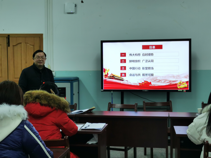 鲁定元书记宣讲的主题是《携手共建人类命运共同体》。人类命运共同体,顾名思义,就是每个民族、每个国家的前途命运都紧紧联系在一起, 应该风雨同舟,荣辱与共。2020 年以来,新冠肺炎疫情突如其来并在全球暴发,影响70多亿人口,成为全人类面临的共同挑战,这再次表明人类是一个休戚与共的命运共同体,充分证明习近平主席提出人类命运共同体这一-重大理念的正确性、前瞻性和现实针对性。