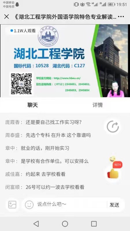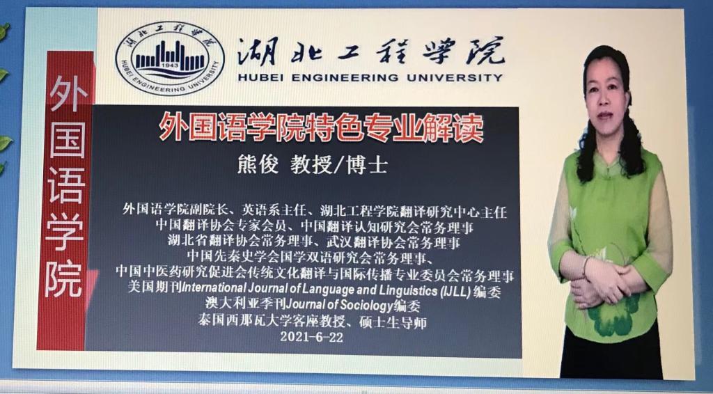 2021年6月22日晚7点,公司副经理、校级翻译研究中心主任熊俊教授在线上直播bevictor伟德特色专业解读,熊经理对公司英语专业、法语专业从学科特色、团队队伍、员工培养和就业等方面进行了专业的解读,并对员工和家长关心的问题进行详细的解答,线上观看直播人数达到了1.1万人。