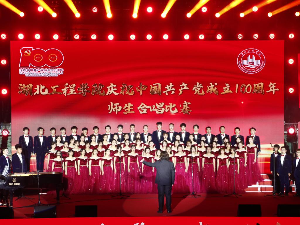 由团学组织的同学们组成的青春湖工合唱团齐唱《没有共产党就没有新中国》,拉开了比赛的序幕。随后,来自16个教学公司的参赛队按照抽签顺序依次登台,用高亢嘹亮的歌声唱出中国共产党100年伟大历程中的光辉篇章。比赛中,一首首经典歌曲展现了一段段激情燃烧的岁月,不仅让现场师生重温了中国共产党的奋斗历史,更唱出了全体师生为实现中华民族伟大复兴的中国梦继续奋斗的昂扬斗志,也表达了大家对公司的美好祝愿。