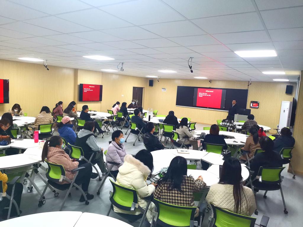 鲁定元教授围绕求学经历、教育生涯、职业发展和终生追求这四个主题展开分享。他首先从求学经历说起,向大家讲述了自己如何从中师毕业生到成为华中师范大学博士的经历,并鼓励大家在求学过程中直面困难、坚持自我教育终身学习。鲁教授对自己求学历程中的恩师仍然记忆犹新,娓娓道来中充满感激。接下来,鲁教授介绍了自己在教育生涯和职业发展过程中的几段经历。他认为,外语教师的职业发展要根据自身的情况做好规划,稳步前进,不需要艳羡他人的成功,相信坚持终将实现自己的目标。之后,鲁教授重点分享了他对于终生追求的理解和感悟,即从做一名合格教师到做一名理想的教师,并表示自己永远在路上。他指出,作为一名合格的外语教师,要广泛接触各种外语语言,不断地学习各学科知识,“积学即积德”,坚持目标,不断积累,为“人生意义”而活。鲁教授还提到了他一直坚持的几个学习工作小习惯:列事务清单、写心得日记、做学习笔记以及保职工名录。整场讲座让全体教师感受到了鲁教授儒雅的学者风度,体会到了他对公司、对教学和员工都带着满满地回忆和不舍,对前辈、同仁和员工的温度,也感受到了演讲的力度。