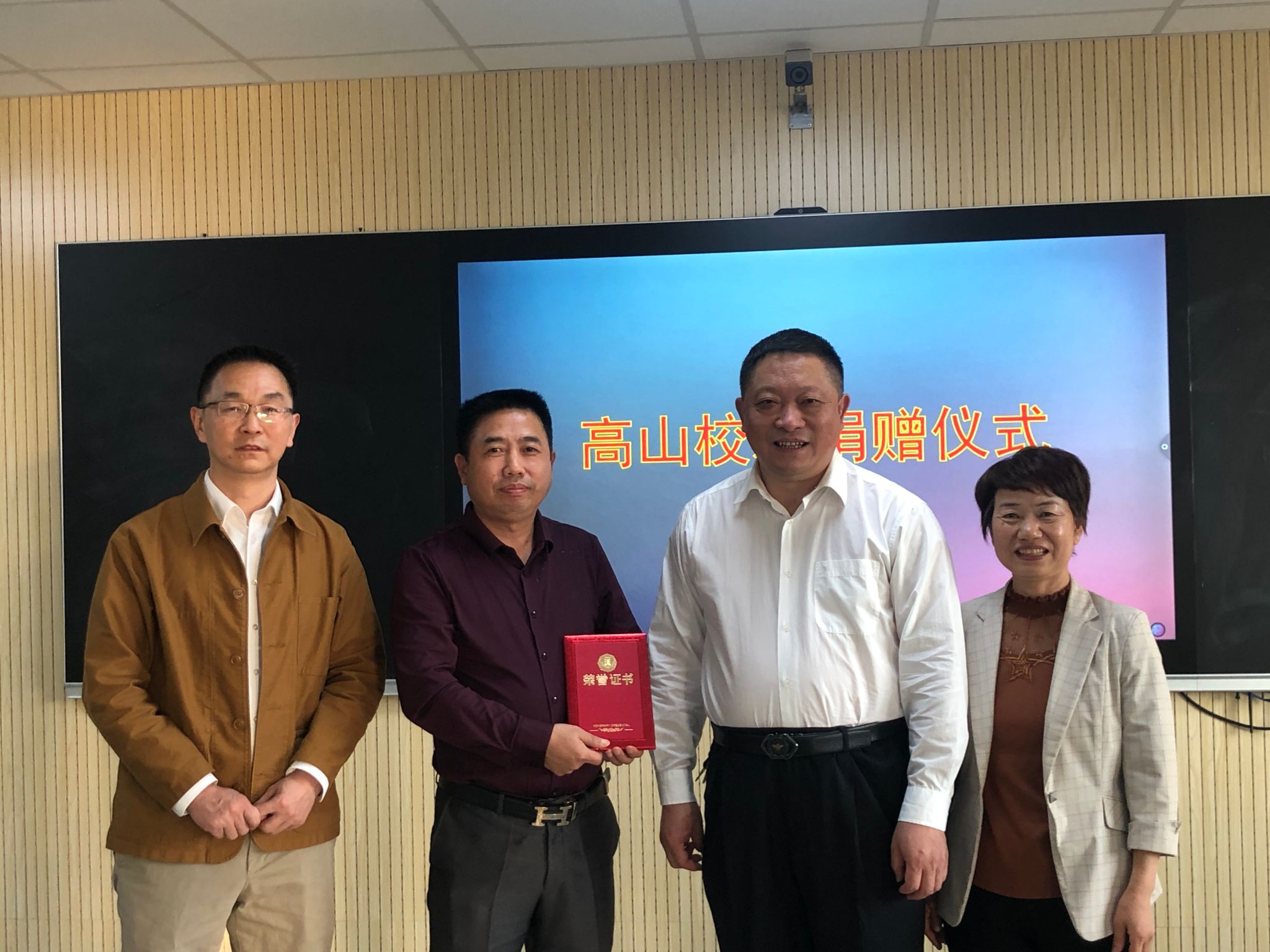 吴建代表bevictor伟德接受捐赠,颁发捐赠证书。并与高山员工畅谈师生情谊,希望高山员工一如既往支持伟德官方网站发展。