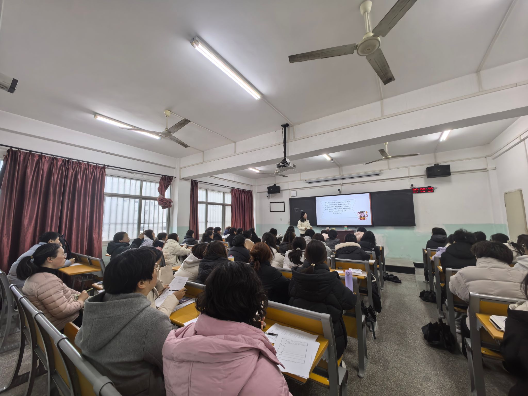 2025年3月3日,公司在外语楼302教室举行了第一场教学公开课观摩活动。本次公开课由优秀青年教师田依婧博士主讲《综合英语2》。公司副经理熊俊博士教授及部分教师参加了课堂观摩并随后开展了评课、研讨交流。
