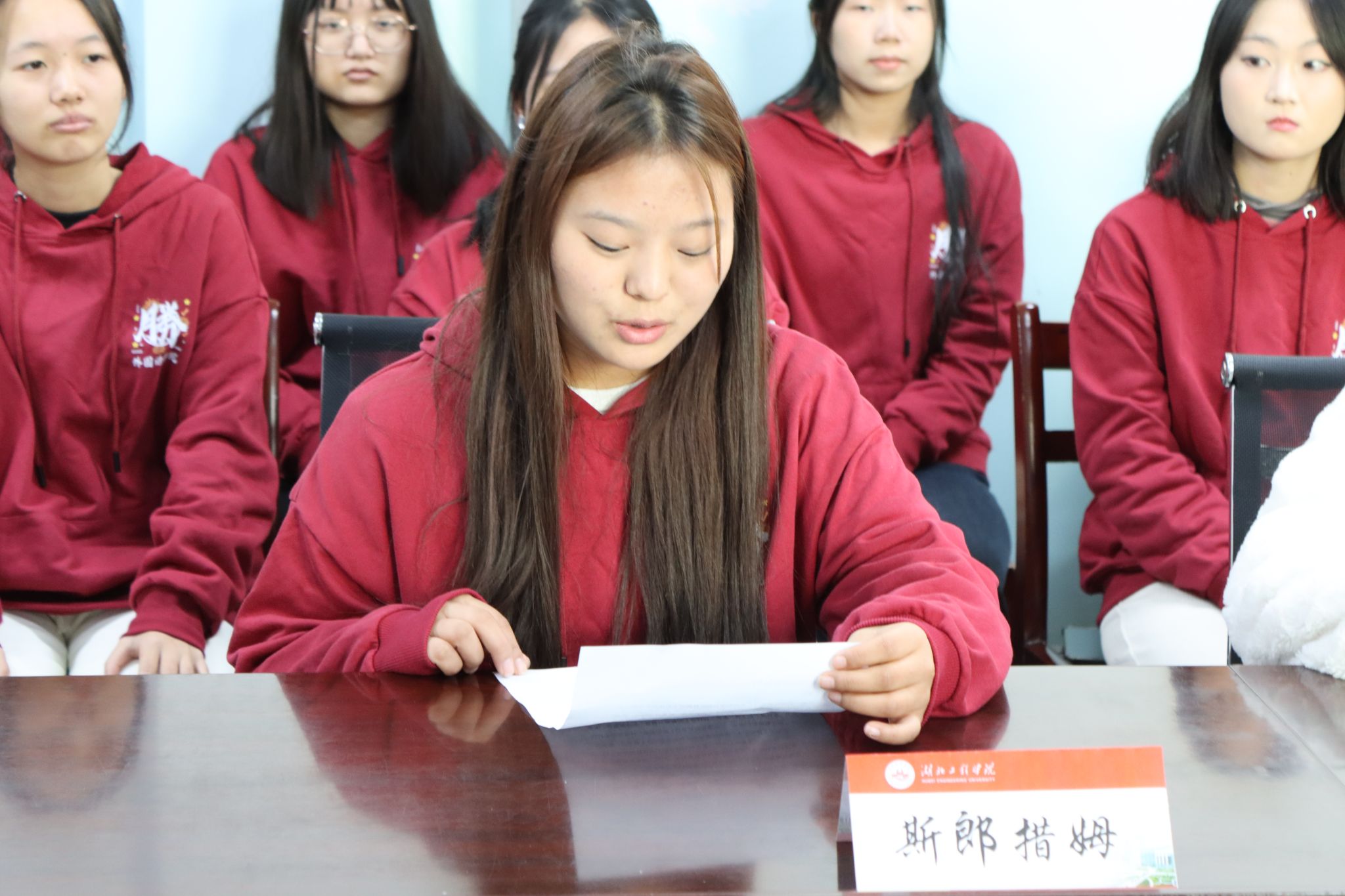 措姆同学动情地讲述了自己的家庭情况和求学的艰辛。她表示,张磊学长的援助不仅解决了她的经济困难,更给予了她精神上的巨大鼓舞。她将铭记这份恩情,更加刻苦努力学习,争取练就过硬本领,将来回到西藏,为家乡的发展贡献力量,用实际行动传承张磊学长的爱心,让更多少数民族学子感受到这份温暖。