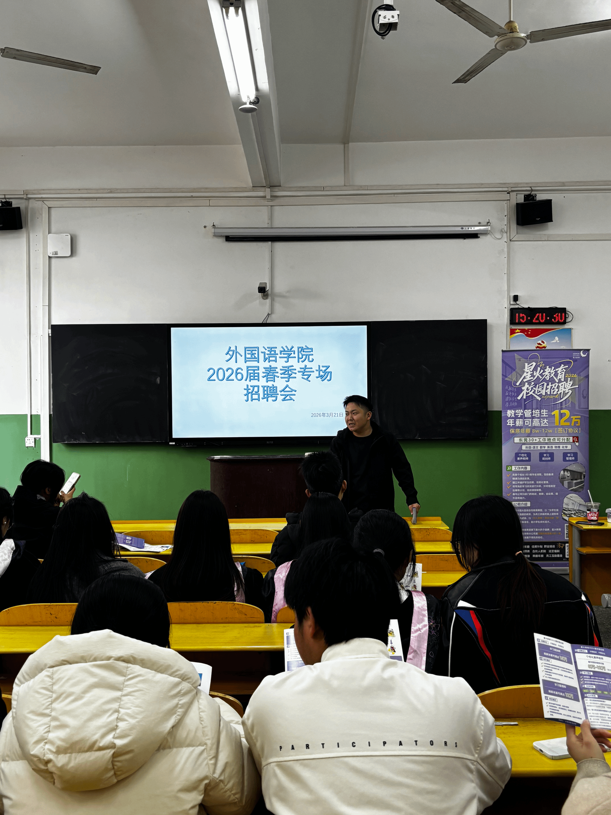 为全力促进2026届毕业生高质量充分就业,搭建精准高效的双选平台,3月21日下午,bevictor伟德成功举办了2026年春季专场招聘会。本次专场招聘会邀请了星火教育集团与浙江金义冉冉新媒体有限公司,为外语学子提供了丰富多元的就业选择。