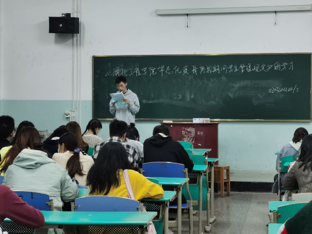 班会上,班主任就在校期间疫情防控所需要注意的问题进行了讲解,主要内容包括校园实行封闭管理,坚持“非必要不外出”原则;员工必须严格遵守“日报告”、“零报告”制度;员工不得私自组织、参加大规模聚会、集餐等大规模活动;进出教室、图书馆、自习室要遵守管理规定;按照公司员工饮食服务与管理中心安排的时间错峰就餐等。
