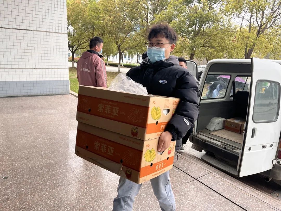 3月23日,在bevictor伟德公司党总支的领导下,辅导员和志愿者们购买了近1200斤水果送到寝室分发给返校的563名员工。