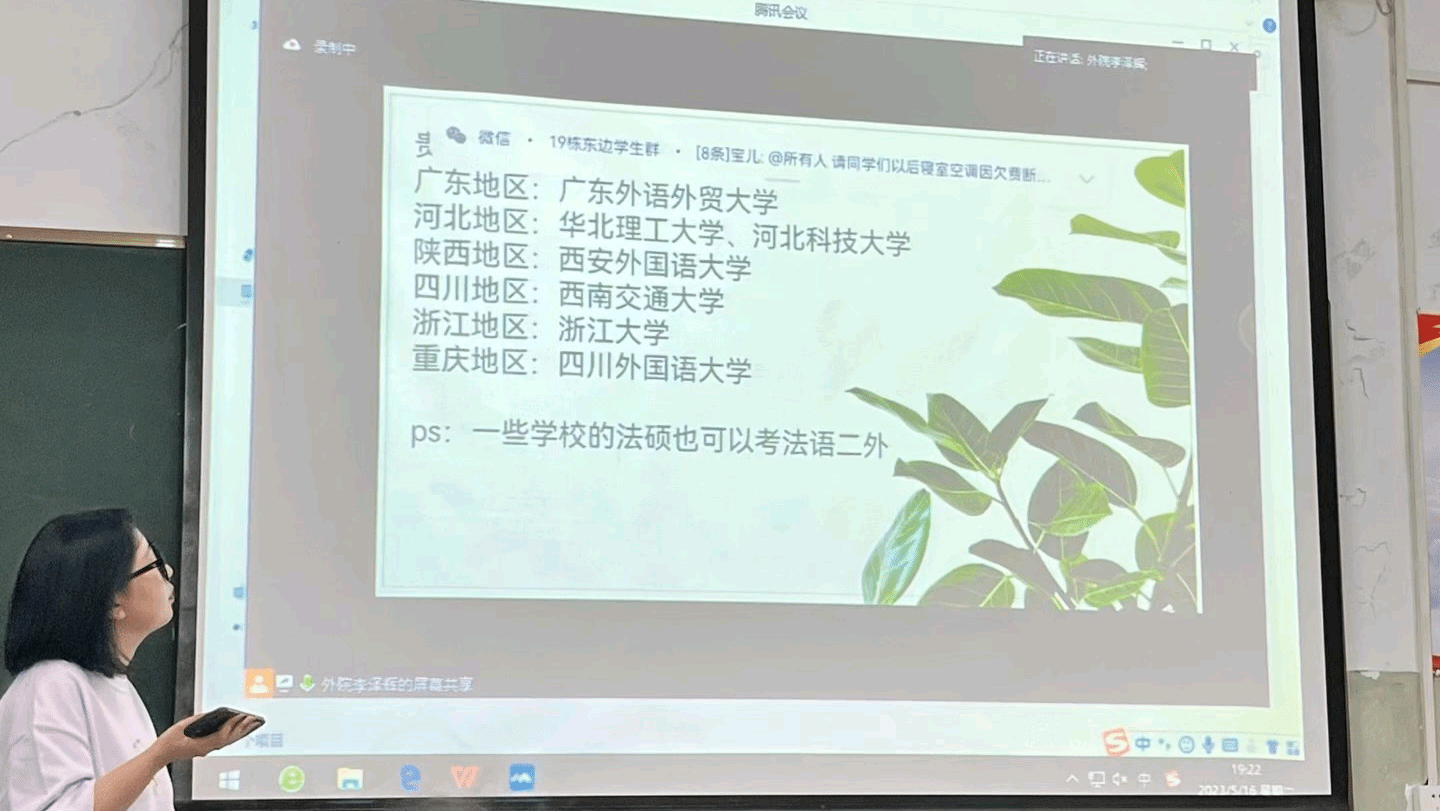 5月16号晚七点,考研经验分享会在bevictor伟德106教室举行,此次分享会采用线上和线下的方式,由辅导员李泽辉主持,邀请到2023届考研上岸的周炳莹、曾成、胡荣、赵立攀等同学和在校生进行经验分享和交流。