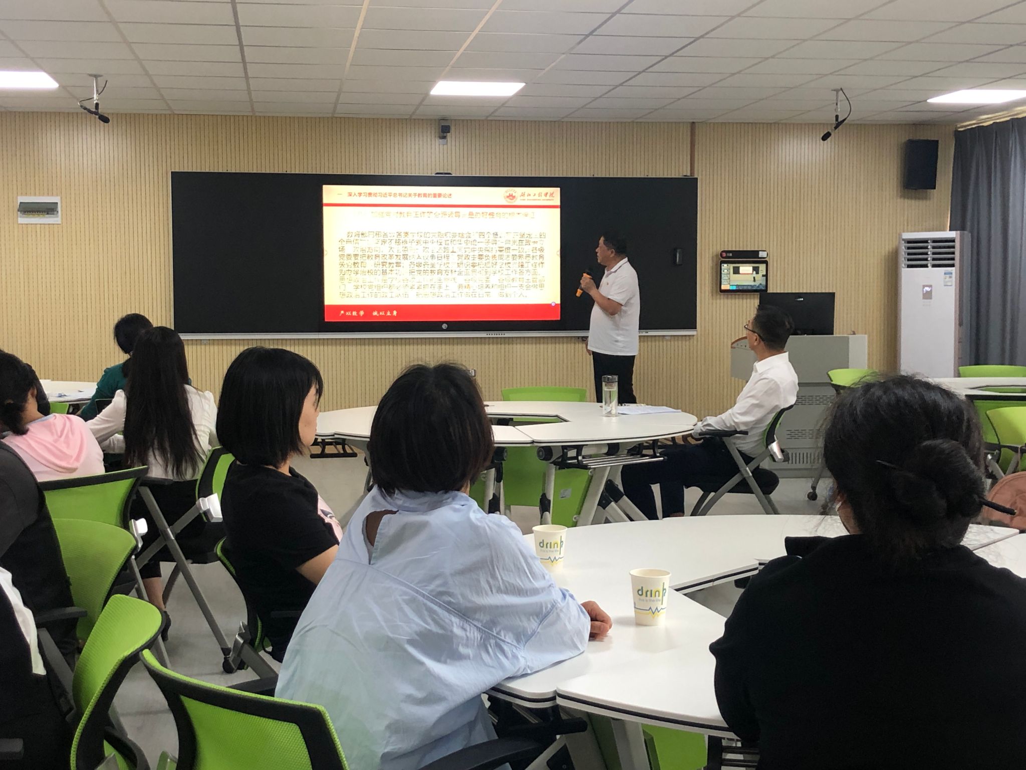 吴建同志以“深入学习贯彻习近平总书记关于教育的重要论述 以党建与业务融合推进外院高质量发展”为题进行讲解。