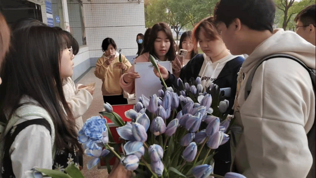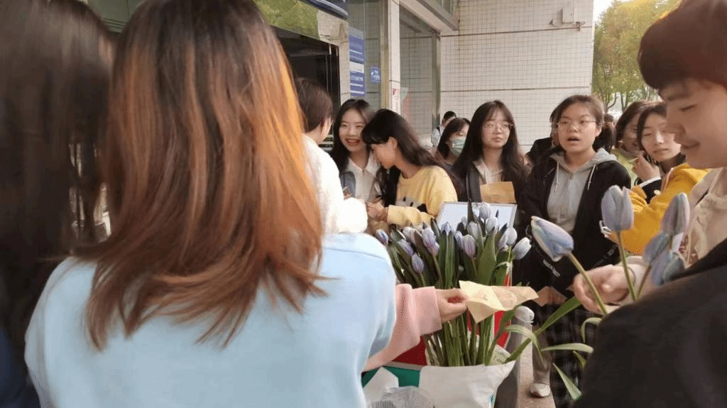 3月7日早晨,为了迎接女神节的到来,在辅导员和员工会干部的提议下,外院男生们在外语楼门口为女生们准备了女神节的惊喜。